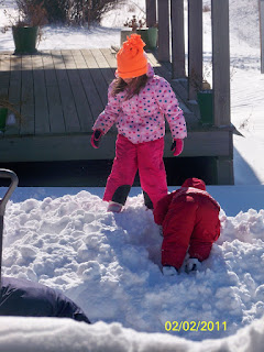 Today we start digging out. And when I say "we", I totally mean Jerry, Chloe and Jacob. . . Jaxen and I stayed nice and toasty inside. And while I'm truth-telling, I'm sure Chloe and Jacob weren't a ton of help, but they did have fun playing in the snow. So I guess that leaves just Jerry. Yep, Jerry dig us out! :o) Good Job, Jerry! Our driveway is clear and the car has been found under a mountain of snow. . . so if we have to go somewhere, we are able. Here are some of the pictures I took during the 2011 Blizzard!